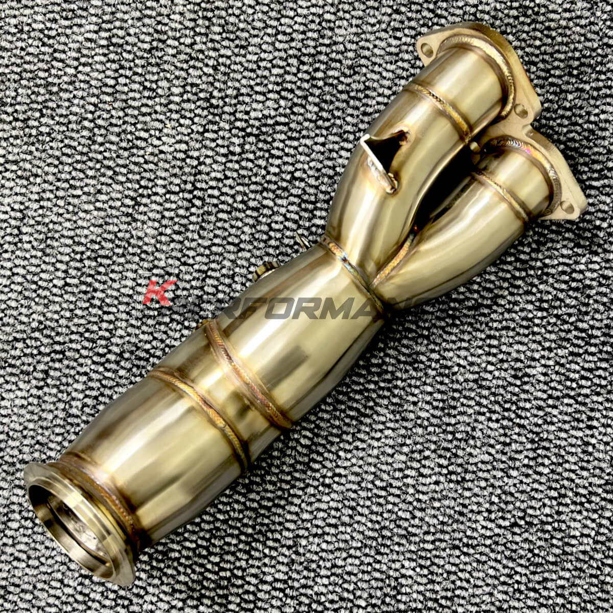 A performance downpipe guides exhaust gases out with minimal resistance, reducing backpressure and helping the engine 'breathe' easier. This results in more horsepower and torque, making it a popular choice for car enthusiasts looking to improve overall performance and enhance their vehicle's sound.