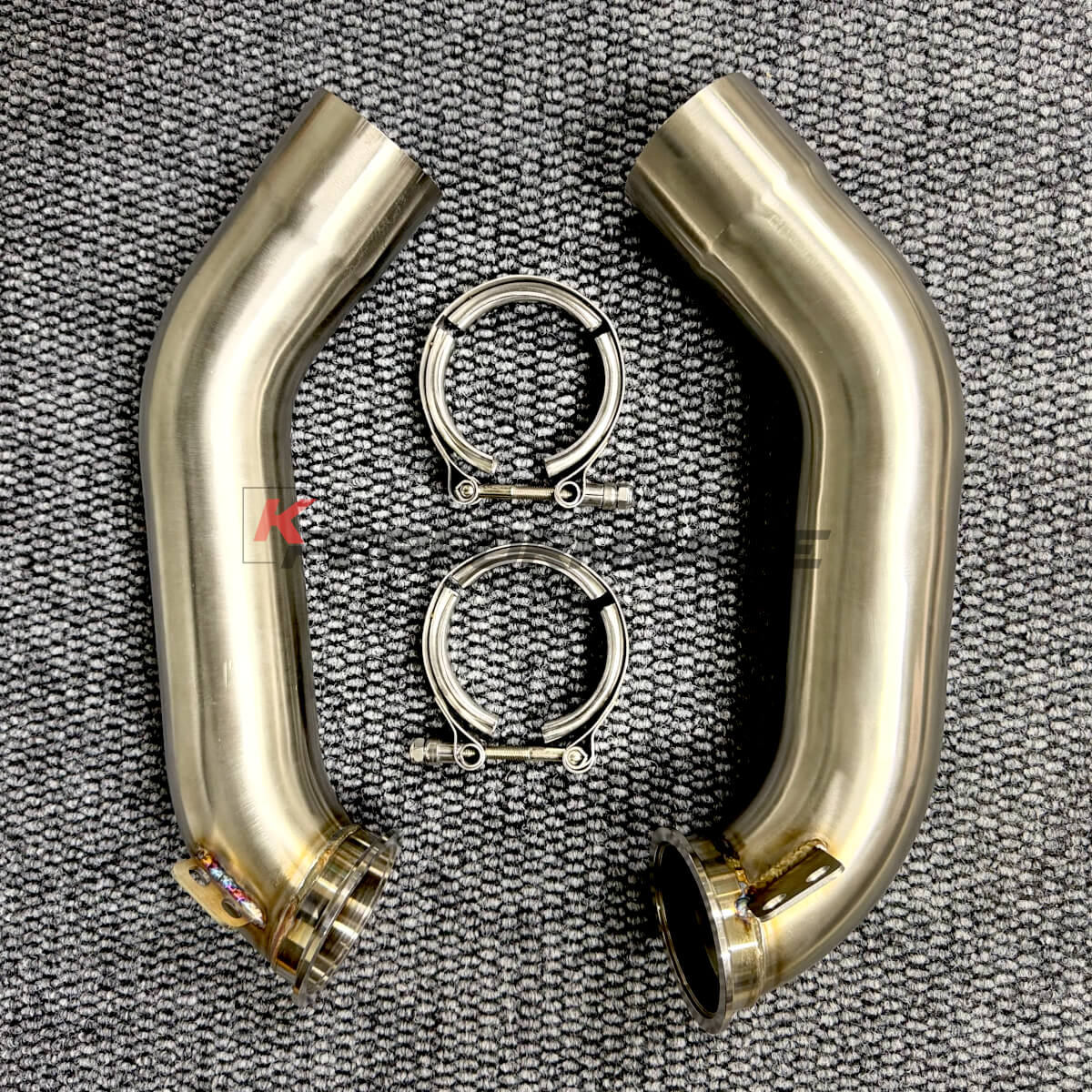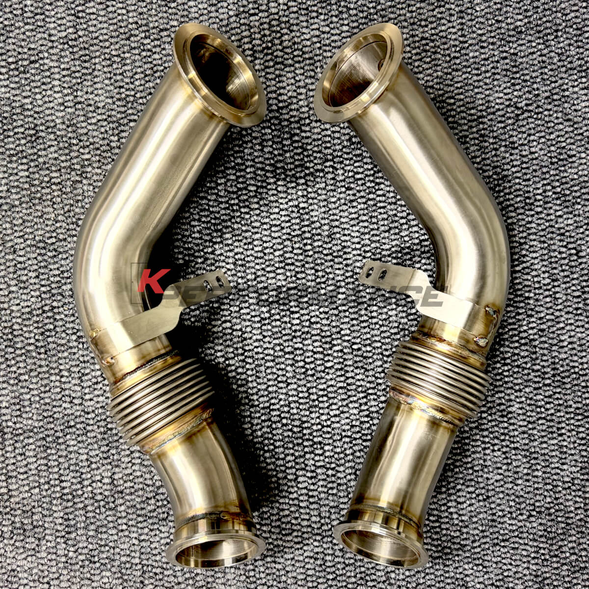 High-quality catless downpipe for the BMW M5 F90, also compatible with the M5 Competition and M5 CS, all equipped with the S63M 4.4L V8 engine.